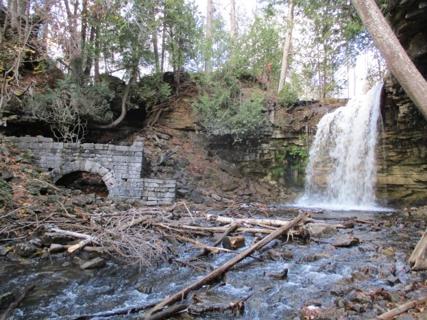 The ruins of a mill at Hilton Falls often leaves guests wondering what it looked like before the mill was closed indefinitely. According to records, the Hilton Falls Mill was powered by a large wheel forty feet in diameter. This operation provided lumber for the small township of Nassagaweya which is now a part of Milton, Ontario. The river in which the falls run on is sixteen mile creek.